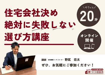| 名称 | 【サクッと20分】住宅会社決め絶対に失敗しない選び方講座 |